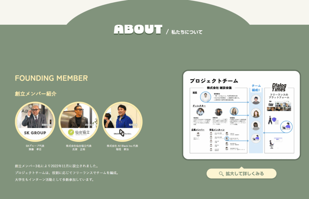 環境ビジネスを展開するSKグループ、人材育成に取り組むAll Black Inc.、そして不動産の視点からまちを育てる仙台協立の3社が力を合わせて設立した、新しい地域共創のかたちです。