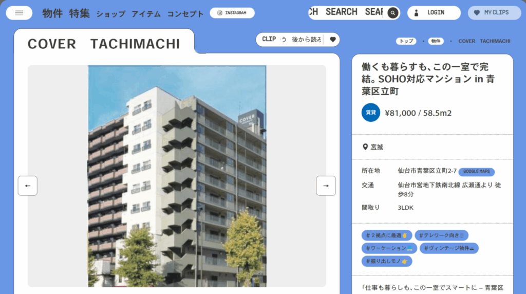 当社の空室物件が、個性的で魅力的な物件を紹介するサイト「WONDER」に掲載されました!